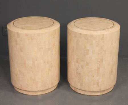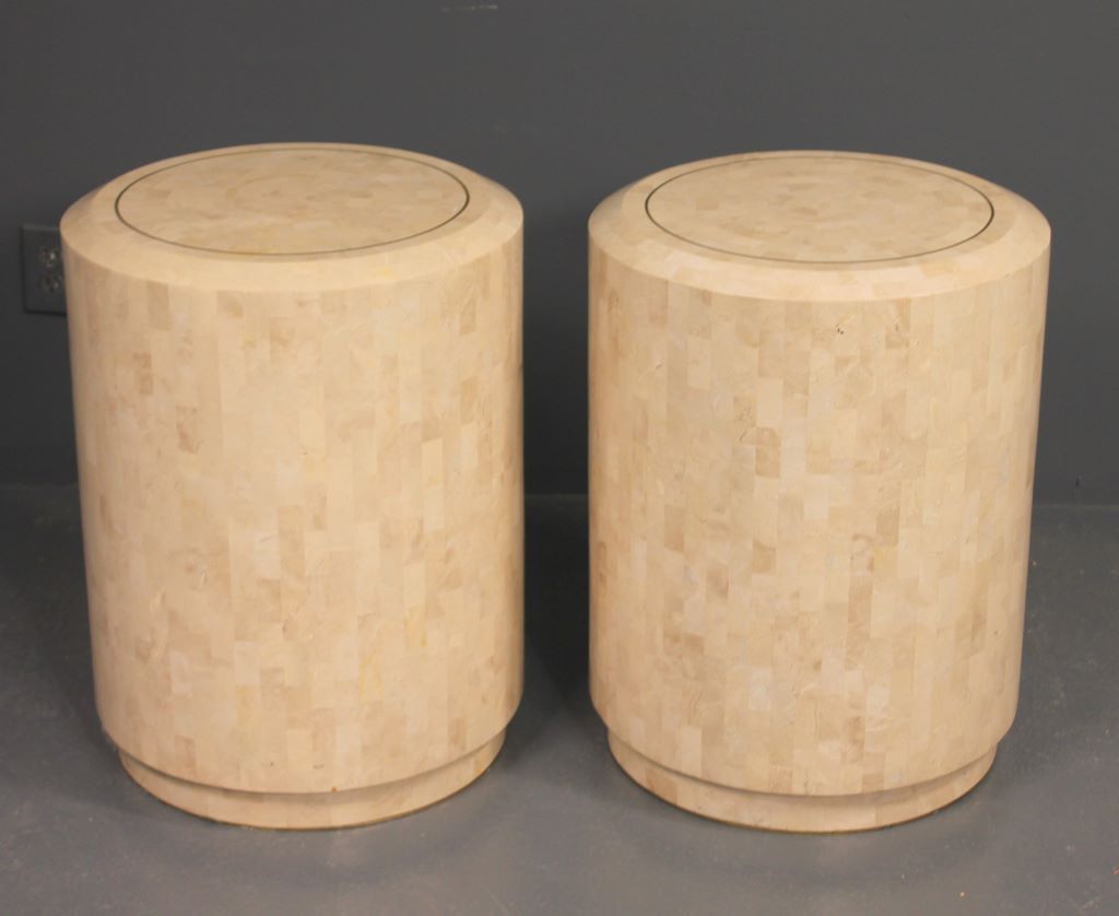 Pair of Contemporary White Lacquer Round End Tables; 35" h., 19" dia. Pair of Contemporary White Lacquer Round End Tables; 35" h., 19" dia.