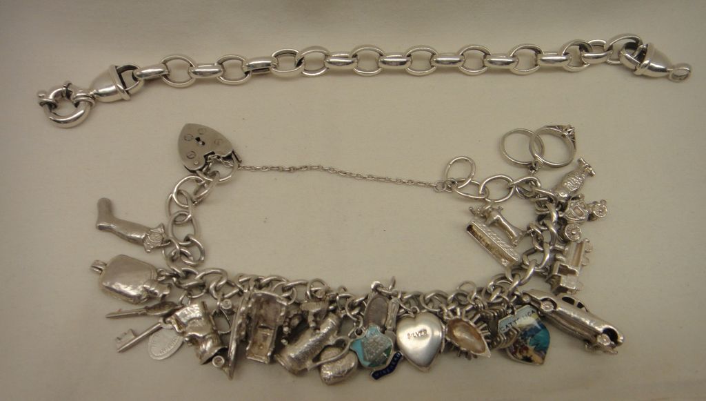 2018 Two Sterling Lady's Charm and Link Bracelets Two Sterling Lady's Charm and Link Bracelets; 2.285 ozt