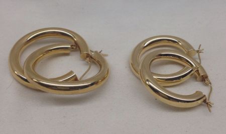 2022 Two Pairs of Ladies Gold Hoop Earrings Two Pairs of Ladies Gold Hoop Earrings