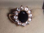 2028 One stamped 14KT yellow gold lady's cast sapphire and aquamarine ring One stamped 14KT yellow gold lady's cast sapphire and aquamarine ring with a split shank with a bright polish finish. Containing: One prong set oval standard brilliant cut nat