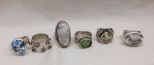 2044 Six sterling Silver lady's gemstone (simulated and natural) rings Six sterling Silver lady's gemstone (simulated and natural) rings. Total Weight of Rings 49.00 dwt; 2.45 ozt. Sizes vary