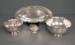 Four Pieces of Silverplate, Ronson Silverplate lighter, Sheffield Co. silverplate dish 6"dia., Wallace silverplate bowl 8 1/2"dia., Rogers silverplate oval tray 13 1/2" Four Pieces of Silverplate, Ronson Silverplate lighter, Sheffield Co. silverplate dish 6"dia., Wallace silverplate bowl 8 1/2"dia., Rogers silverplate oval tray 13 1/2"