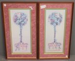 Pair of Contemporary Prints of Plants with paper marbleized matte, gold liners, wood frames; 32" x 18" Pair of Contemporary Prints of Plants with paper marbleized matte, gold liners, wood frames; 32" x 18"