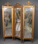 Gold Dressing Screen with three Mirrored Panels; each panel 82" h., 22" w. Gold Dressing Screen with three Mirrored Panels; each panel 82" h., 22" w.
