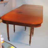 Two D-ends (could be used as consoles) and center drop leaf section. Mahogany, early 19th century table D-end (46"w., 24"d., 28 1/2"h.) drop leaf (19"w, 24"drop) Two D-ends (could be used as consoles) and center drop leaf section. Mahogany, early 19th century table D-end (46"w., 24"d., 28 1/2"h.) drop leaf (19"w, 24"drop)