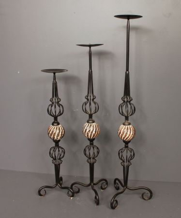 6622 Set of Three Black Iron Candle Holders