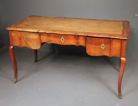 20th Century French Three Drawer Leather Top Desk with Bronze Mounted Feet, from New York Estate; 54" w., 27" d., 29" h. 20th Century French Three Drawer Leather Top Desk with Bronze Mounted Feet, from New York Estate; 54" w., 27" d., 29" h.