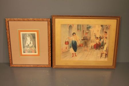Two 20th Century Prints, one of young girl carrying water (22 1/2" w., 18 1/2" h.) and one of Kwan Yen (15" w., 17 1/2" h.) Two 20th Century Prints, one of young girl carrying water (22 1/2" w., 18 1/2" h.) and one of Kwan Yen (15" w., 17 1/2" h.)