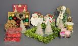 20109 Group of Miscellaneous Christmas Items Description: Box lot of Christmas decorations (not all in photo) rolls of ribbon, 2 plates, 4 beaded trees, mistletoe frame, bulbs.