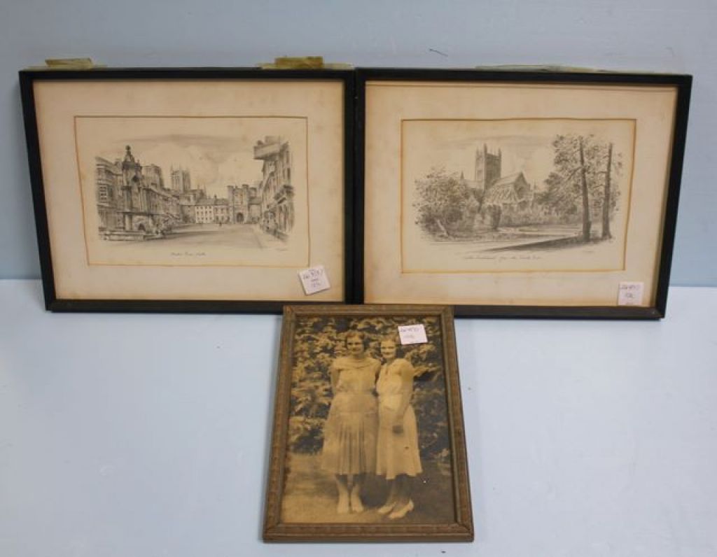 20205 Two Cathedral Prints and a Photo of Two Ladies Two Cathedral Prints (13" w., 9 1/2" h.) and a Photo of Two Ladies (6 1/2" w., 10 1/2" h.)