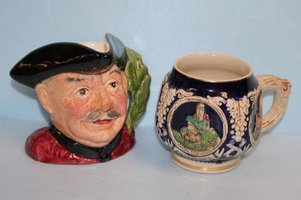 20210 Two Mugs Two Mugs; one Staffordshire character jug 4 1/2" h., one German mug 4" h.