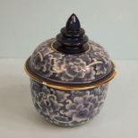 20219 Covered Blue and White Jar Covered Blue and White Jar, chip on rim; 4 1/4" dia., 7" h.