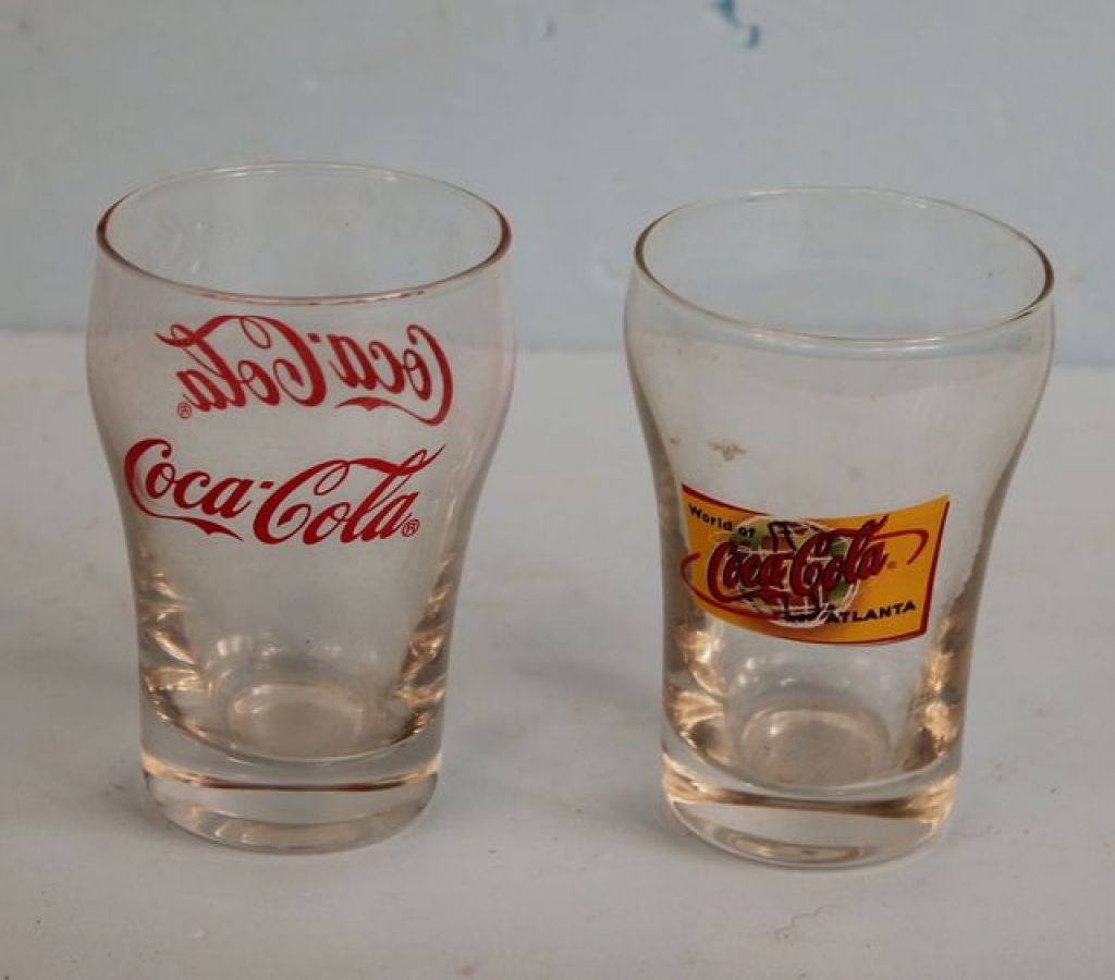Two Small Coke Glasses Two Small Coke Glasses; 3" h., 2 1/4" dia. Two Small Coke Glasses Two Small Coke Glasses; 3" h., 2 1/4" dia.