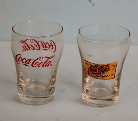 20222 Two Small Coke Glasses Two Small Coke Glasses; 3" h., 2 1/4" dia.