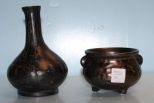 20237 Footed Bronze Finish Flower Pot, Pottery Vase 4" dia. ; 7 1/2" h.