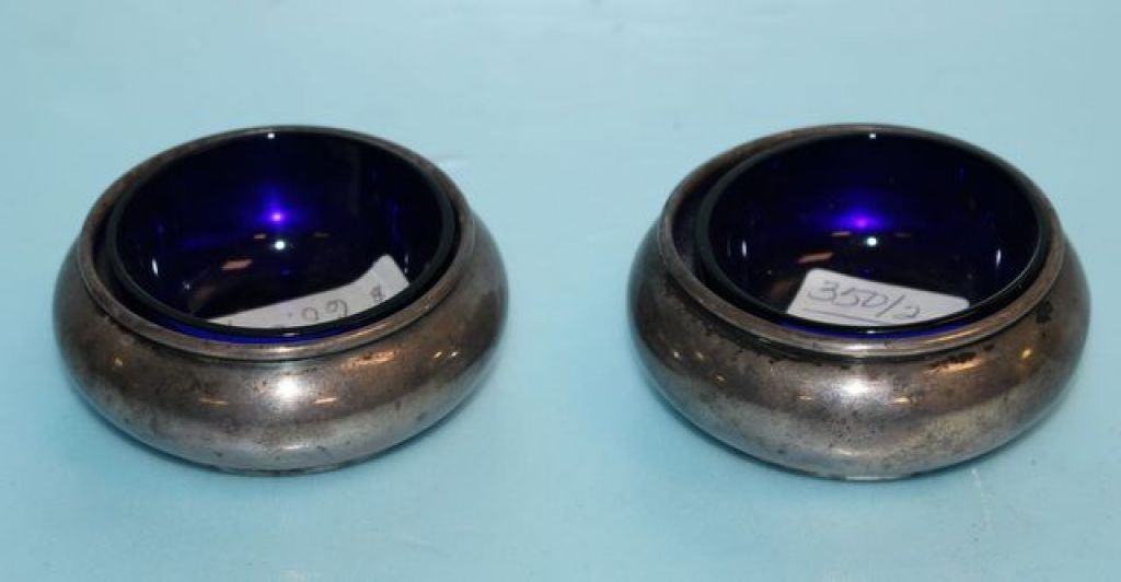 Two Sterling Salt Cellars with Cobalt Liners Two Sterling Salt Cellars with Cobalt Liners