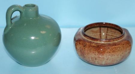 20251 Pottery Vase, Small Green Pottery Jug Vase, 5" dia. ; Jug 5" h.