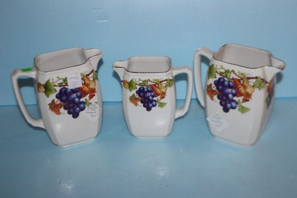 20269 Three Rington's New Castle Pitchers 6 1/2" , 7 1/2" h.