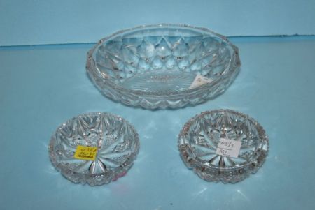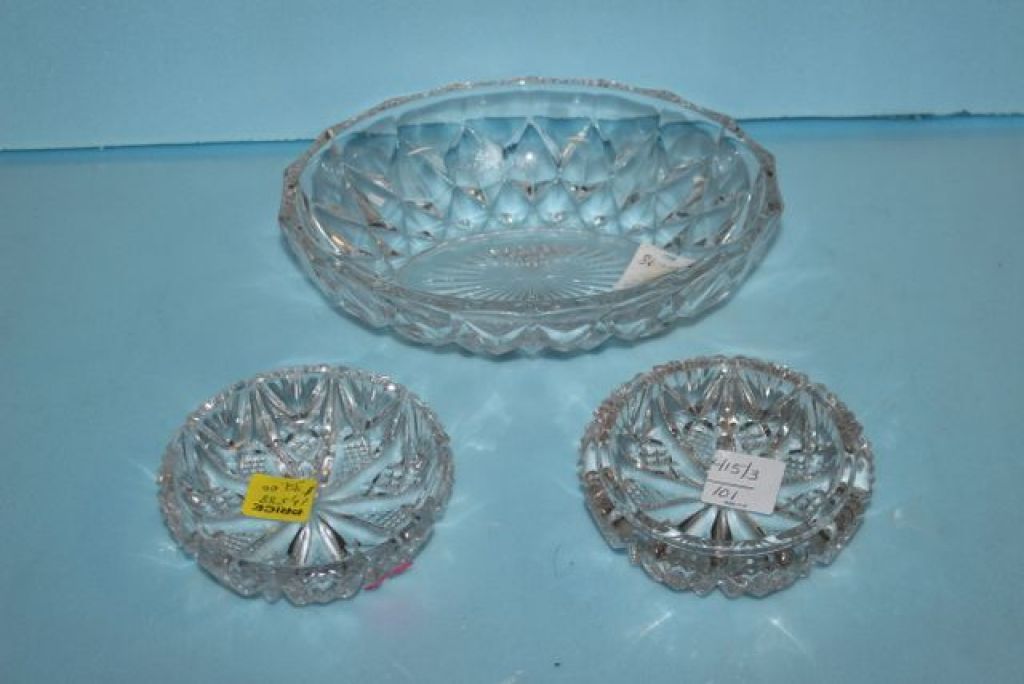 20270 Press Glass Oval Dish, Two Small Press Glass Dishes Dish, 7 1/4" w. ; press glass dishes, 3 1/2" dia.