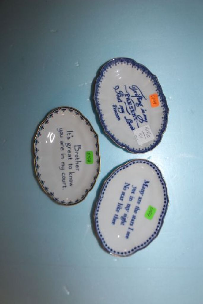 20273 Set of Three Porcelain Blue and White "Verse" Dishes 5 1/2" w.