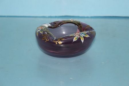 20296 Amythest Glass Small Bowl with Enamel Flowers 4 1/4" dia.