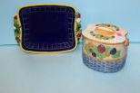 20314 Made In Japan Covered Jar, Cobalt Blue Strawberry Plate 6" w. ; 9 1/2" w.
