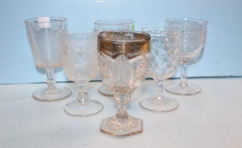 Six Miscellaneous Glasses One etched Six Miscellaneous Glasses One etched
