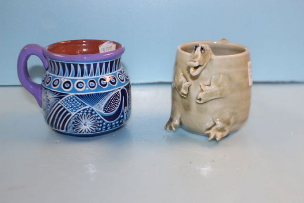 Brightly Colored Pottery Mug, Wortman Alligator Pottery Mug Brightly Colored Pottery Mug, Wortman Alligator Pottery Mug