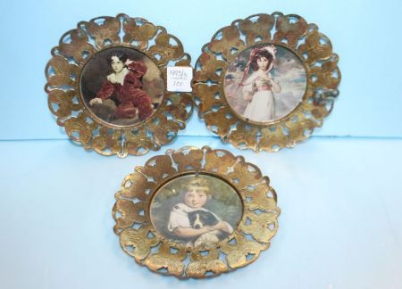 20339 Three Pictures in Press Brass Frames 6" dia.