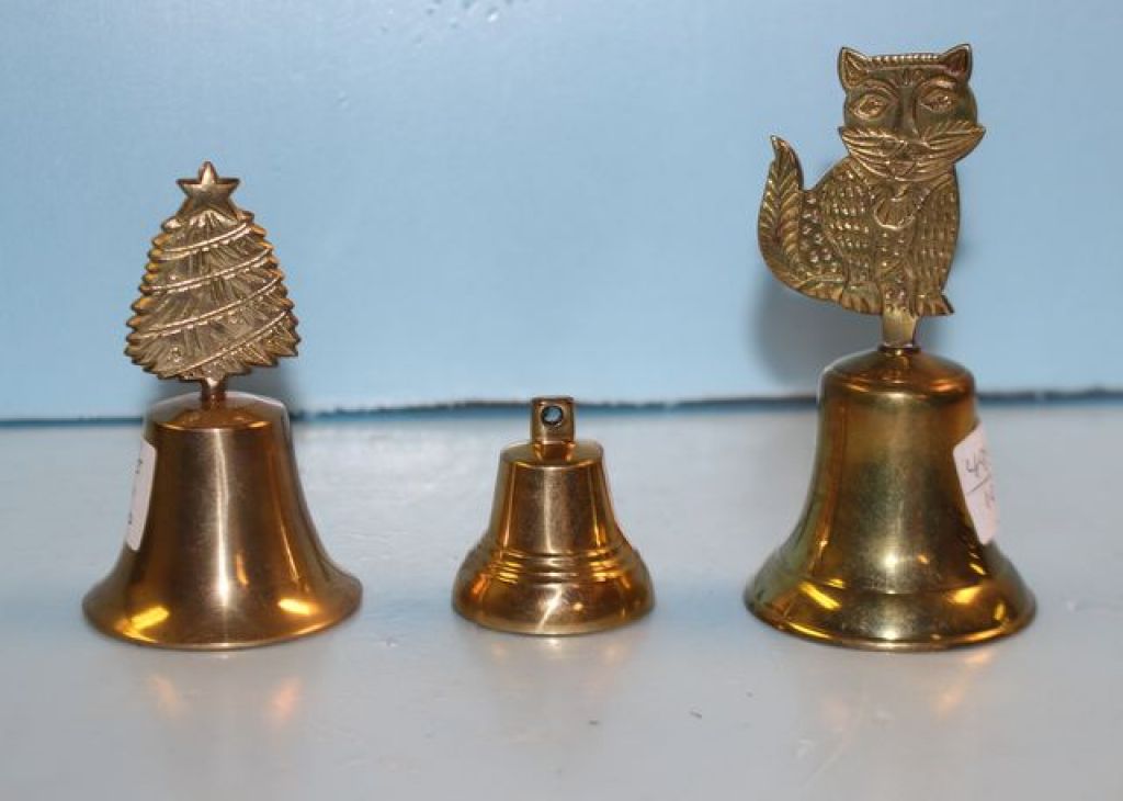 20341 Three Small Brass Hand Bells 5" h.