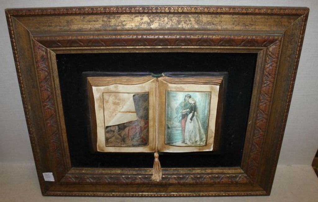 Plaque/Picture Framed of Open Book with Illustration of Courtship Scene Plaque/Picture Framed of Open Book with Illustration of Courtship Scene, 23"w., 18"h. Plaque/Picture Framed of Open Book with Illustration of Courtship Scene Plaque/Picture Framed of Open Book with Illustration of Courtship Scene, 23"w., 18"h.