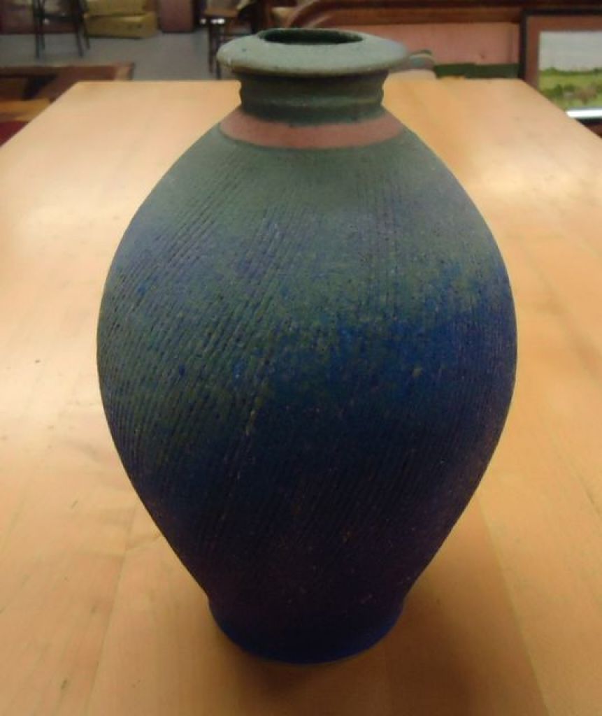 20574 Signed Purple and Green Vase Signed purple and green vase 7"h