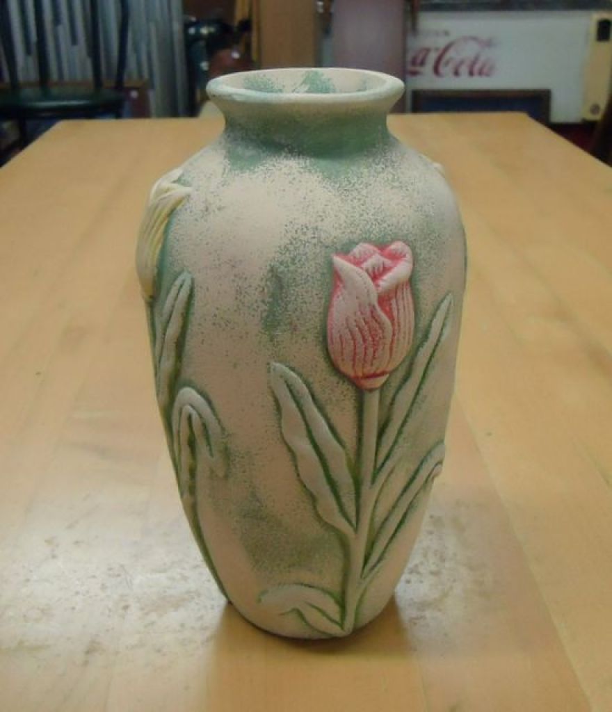 20602 Small Pottery Vase w/Tulips Small pottery vase w/tulips 6 1/2"h.