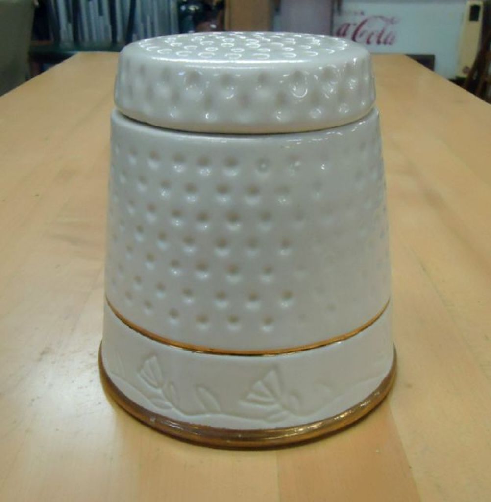 Thimble Jar w/Lid Thimble jar w/lid 5 1/4"h. Thimble Jar w/Lid Thimble jar w/lid 5 1/4"h.