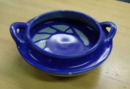 20629 Blue Pottery Bowl Blue pottery bowl signed 8"