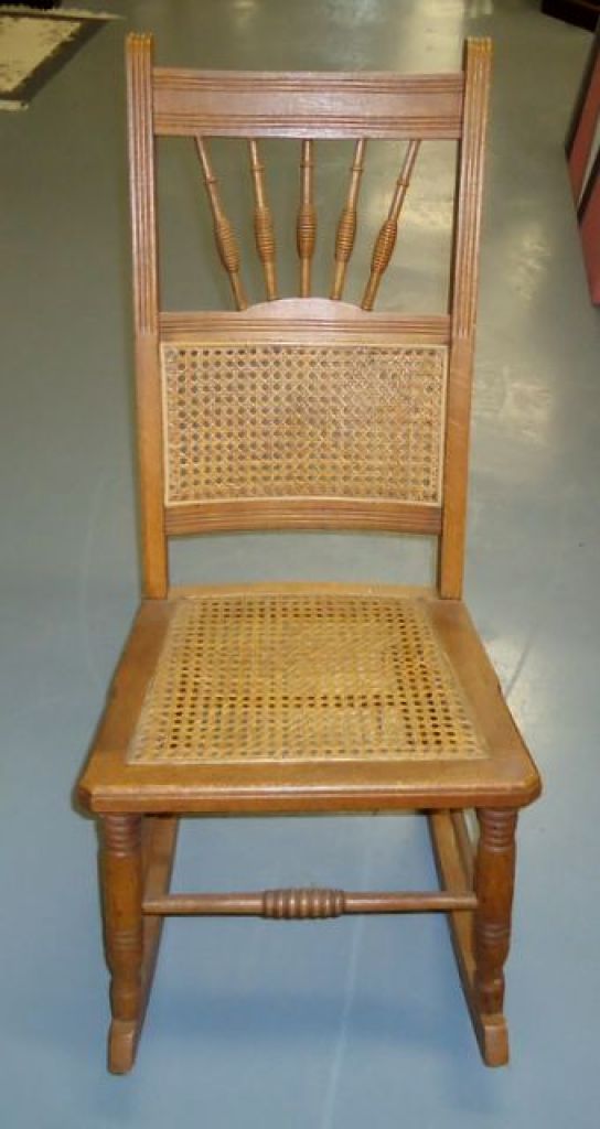 Oak Cane Seat and Back Sewing Rocker Oak Cane Seat and Back Sewing Rocker; 35"h. x 16 1/4"w. x 15"d. Oak Cane Seat and Back Sewing Rocker Oak Cane Seat and Back Sewing Rocker; 35"h. x 16 1/4"w. x 15"d.