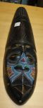 20886 Wood Carved Ghana Tribal Mask Wood Carved Ghana Tribal Mask, colorful beading on front; 19" h., 5" w.