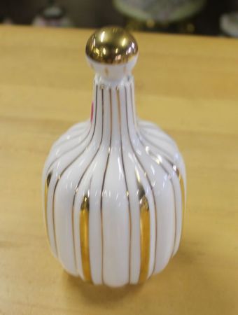 20909 Unusual Gold and White Perfume Bottle Unusual Gold and White Perfume Bottle; 6" h.