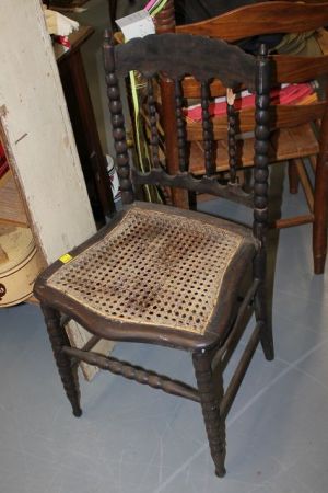 20949 Cane Bottom Side Chair Cane Bottom Side Chair, some damage on one spindle; 33" h., 17" w.
