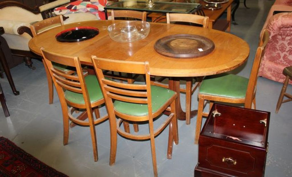 20980 Mahogany Table with Six Chairs Mahogany Dining Table with Six Matching Bentwood Chairs