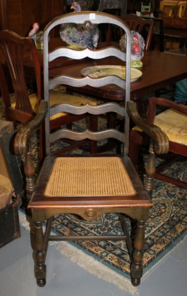 Cane Bottom Arm Chair Cane Bottom Arm Chair; 43" h., 21" w. Cane Bottom Arm Chair Cane Bottom Arm Chair; 43" h., 21" w.