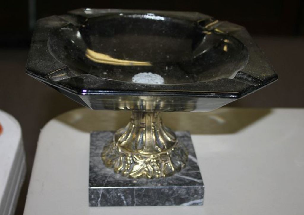 21034 Vintage Glass Ashtray on Stand 8"dia.