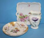 21043 Royal Porcelain Vase, Hand Painted Portugal Bowl, and German Bavarian Tray Royal Porcelain Vase 6"h, Hand Painted Portugal Bowl 8"dia., and German Bavarian Tray 8"sq.