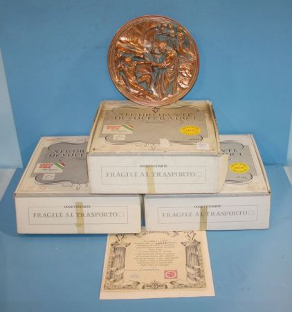 Three Limited Edition 1989 Italian Plaques from the Gates of Paradise Court. Purchased from Bradford Exchange, each has COA "God creates Adam", Creation of Eve, "Isaac, 8"dia. Three Limited Edition 1989 Italian Plaques from the Gates of Paradise Court. Purchased from Bradford Exchange, each has COA "God creates Adam", Creation of Eve, "Isaac, 8"dia.