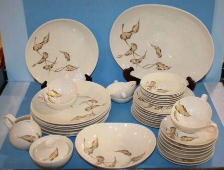 21074 Thirty Nine Pieces Castleton Vintage China Set 7 dinner plates, 8 salad plates, 7 bread and butter plates, 5 cups, 7 saucers, creamer, sugar, vegetable bowl, platter.