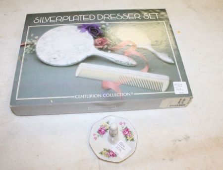 Silverplate Dresser Set and Porcelain Ring Holder Silverplate Dresser Set and Porcelain Ring Holder Silverplate Dresser Set and Porcelain Ring Holder Silverplate Dresser Set and Porcelain Ring Holder