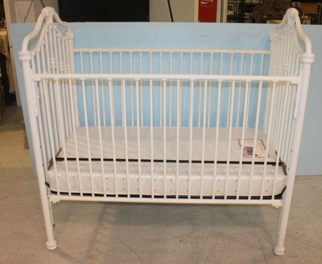 Iron Baby Bed with mattress, 53"h. Iron Baby Bed with mattress, 53"h.