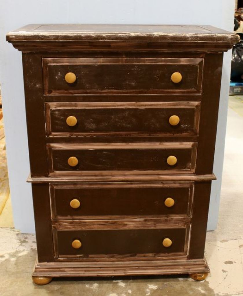 Five Drawer Painted Chest 26" w., 18" dia., 48" h. Five Drawer Painted Chest 26" w., 18" dia., 48" h.