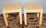 Two Plastic Tables 13 1/2" sq., 14" h. Two Plastic Tables 13 1/2" sq., 14" h.