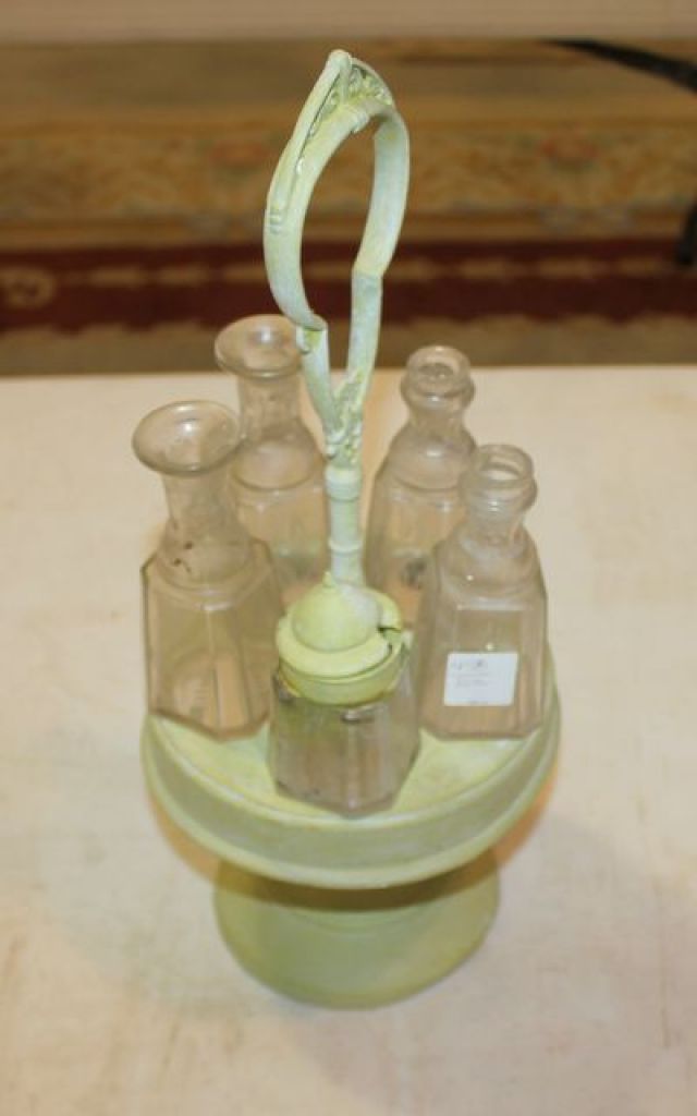 Painted Green Silverplate Castor Set Painted Green Silverplate Castor Set